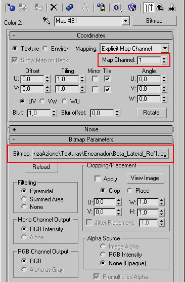 اضغط على Texporter سنقوم بإنشاء أول خارطة لتحريرها في برنامج الفتوشوب. لقد قمت بتشكيله كما هو مبين على اليسار. مرة أخرى لا تنسى بتحديد القناة في هذه الحالة الرقم 1
